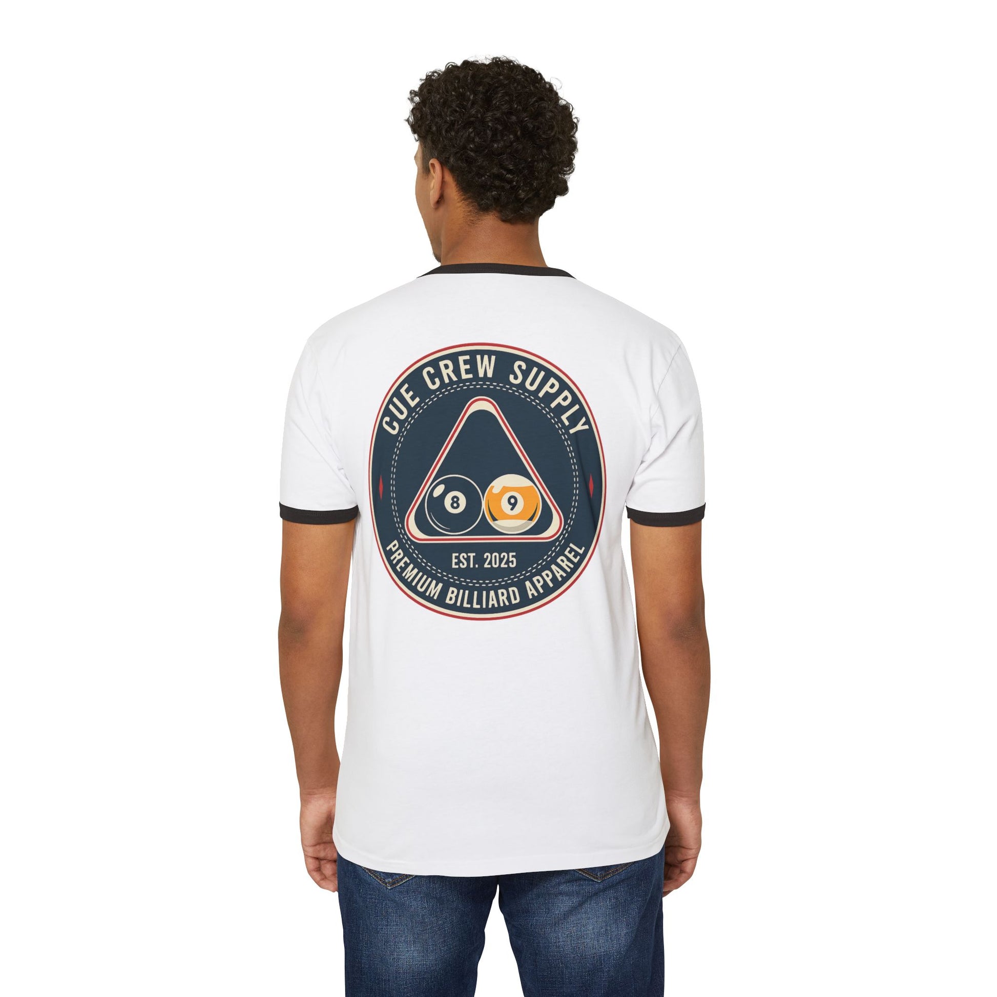Cue Crew Supply Logo V11 Next Level Ringer Tee