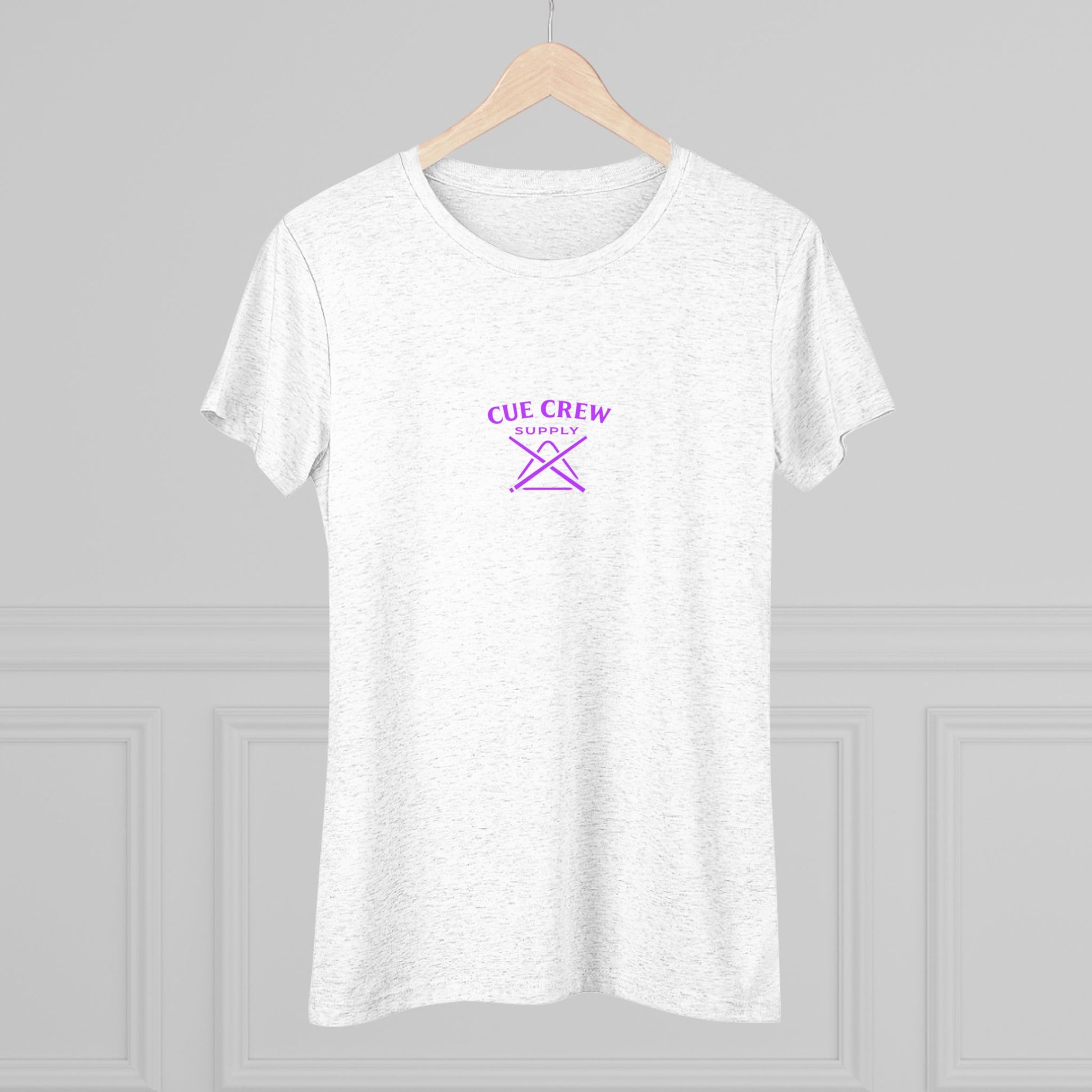 Light, soft, and shaped to flatter — this slim-fit triblend tee drapes like a favorite, worn-in top while keeping a crisp, confident look. A small, playful “Cue Crew” emblem sits over the heart; on the back a bold pin-up–style queen lounges atop a pool table with the line “Bow Down — The Table Has a Queen.” It’s a tee that speaks to someone who owns the room at game night, who moves between smoky halls and sunlit patios with the same easy confidence. The fabric breathes during long matches, the slim cut layers neatly under jackets, and the durable seams hold their shape after repeated wear. Wear it to your weekly league night, to a casual tournament, or when you want to announce quietly — and proudly — who rules the table.