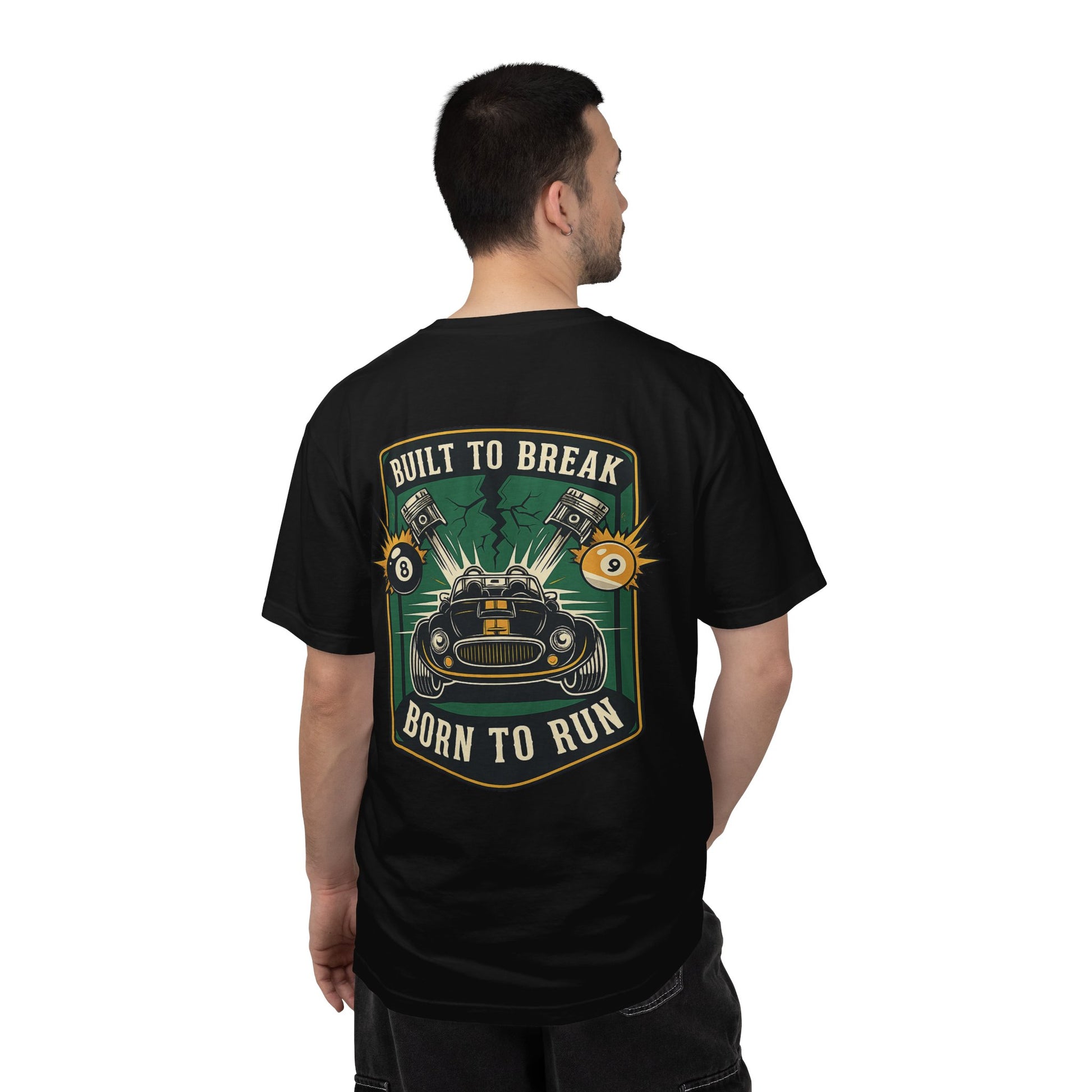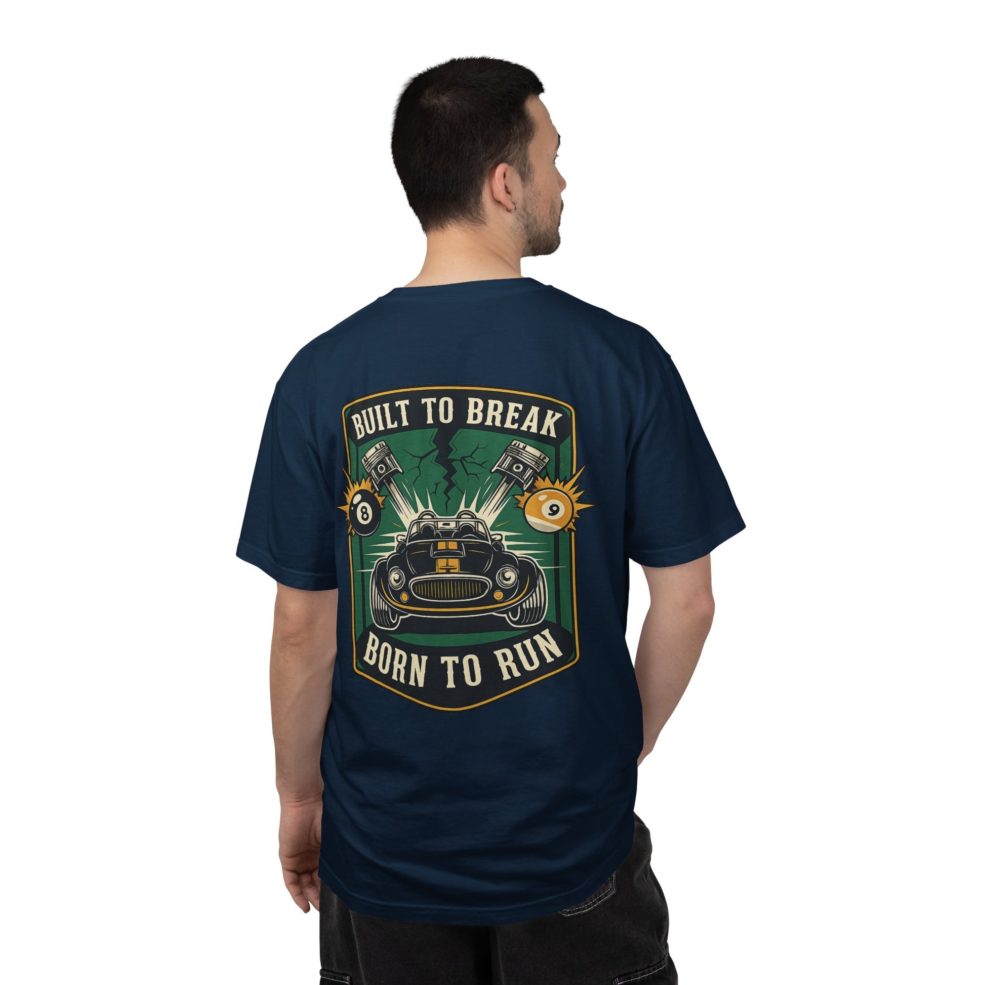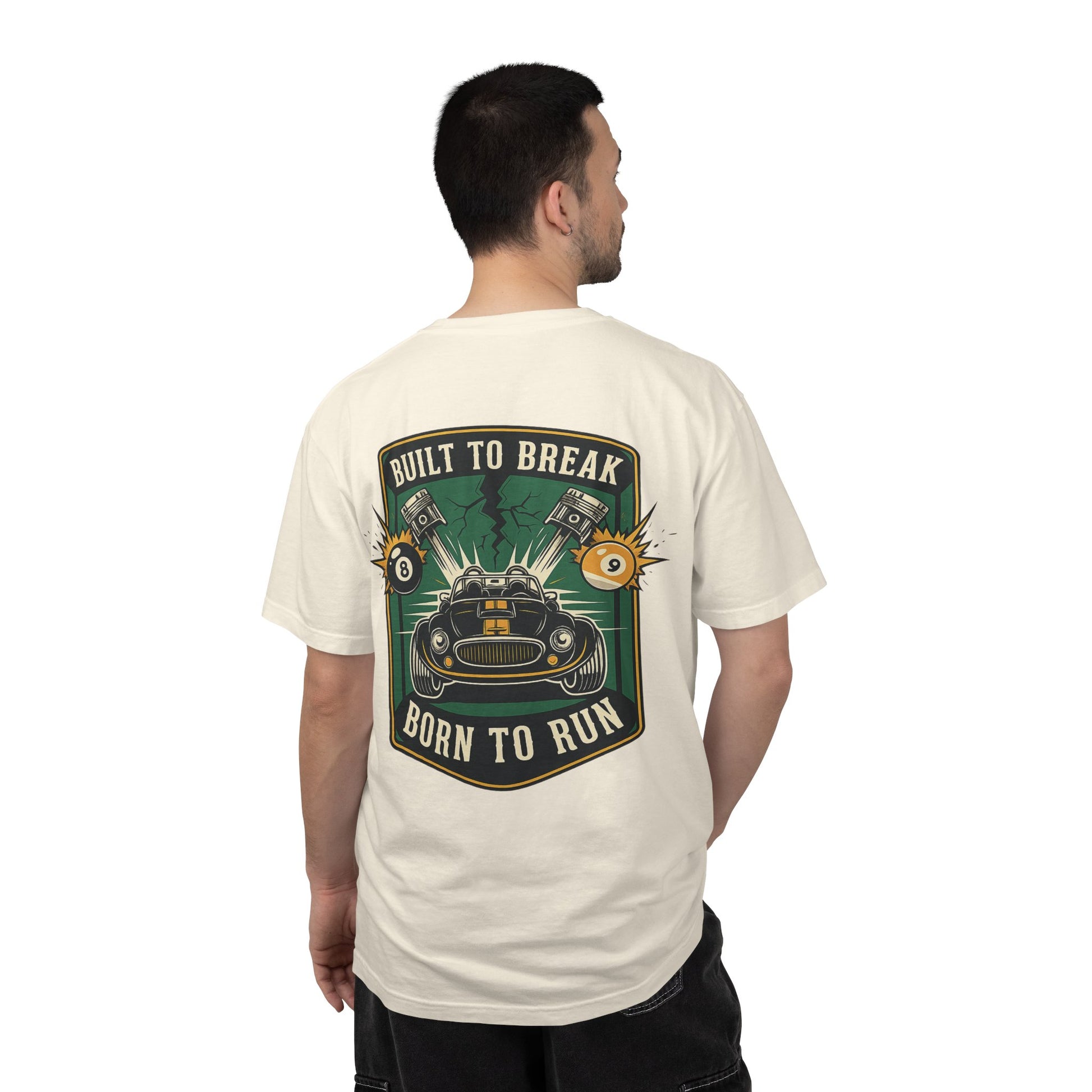 This heavyweight, garment-dyed tee carries the rumble of the open road. The relaxed fit and soft, post-dye finish make it feel lived-in from the first wear. Small chest artwork hints at the bold, full-back graphic: a snarling machine framed by pistons, electrified sparks and the banners “Built to Break / Born to Run.” It sits naturally in a mechanic’s garage, a weekend racer’s toolkit, or layered under a jacket at a local car meet. The cotton is substantial and pre-shrunk, so the shirt keeps its shape through grease-stained weekends and long drives. Available in many colors and sizes, this tee blends durable construction with vintage-inspired, motorhead style—comfort that’s ready when the engine calls.