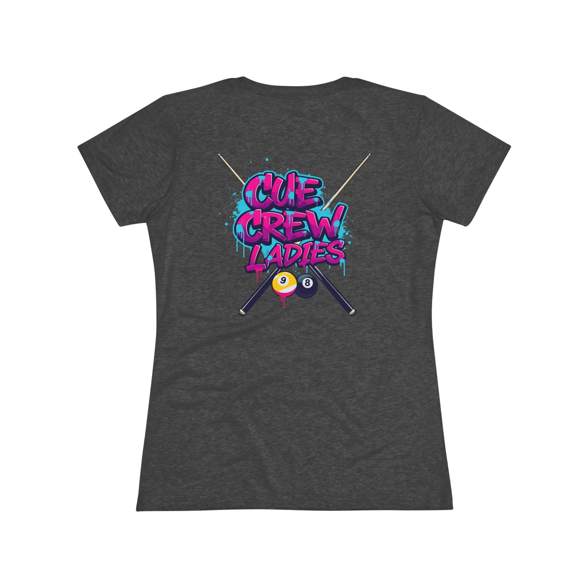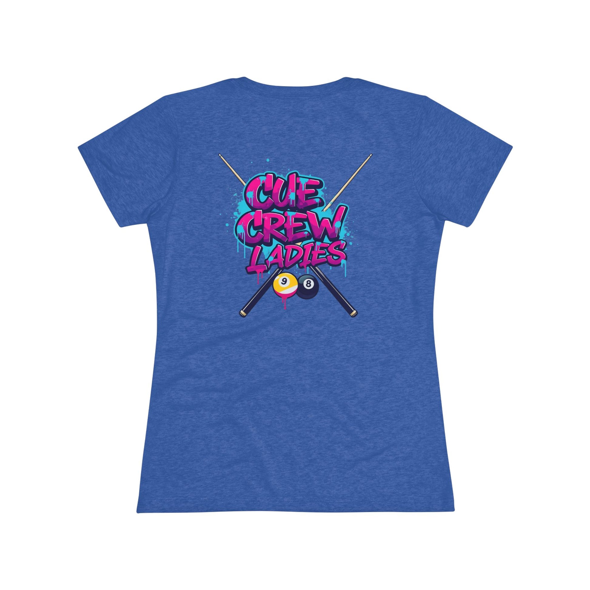 Light, lived-in, and full of personality — this slim-fit tee was designed for women who read the table, chalk their cues, and laugh between racks. Soft tri-blend fabric drapes comfortably while the small chest emblem keeps things understated up front. Flip to the back and a bold, colorful ‘Cue Crew Ladies’ graphic crosses pool cues and balls like a badge of weekend league pride. Wear it to warm up before a match, to the bar after a run of racks, or at casual meetups with teammates. The shirt moves with you, holds its shape, and keeps that vintage, playable vibe.