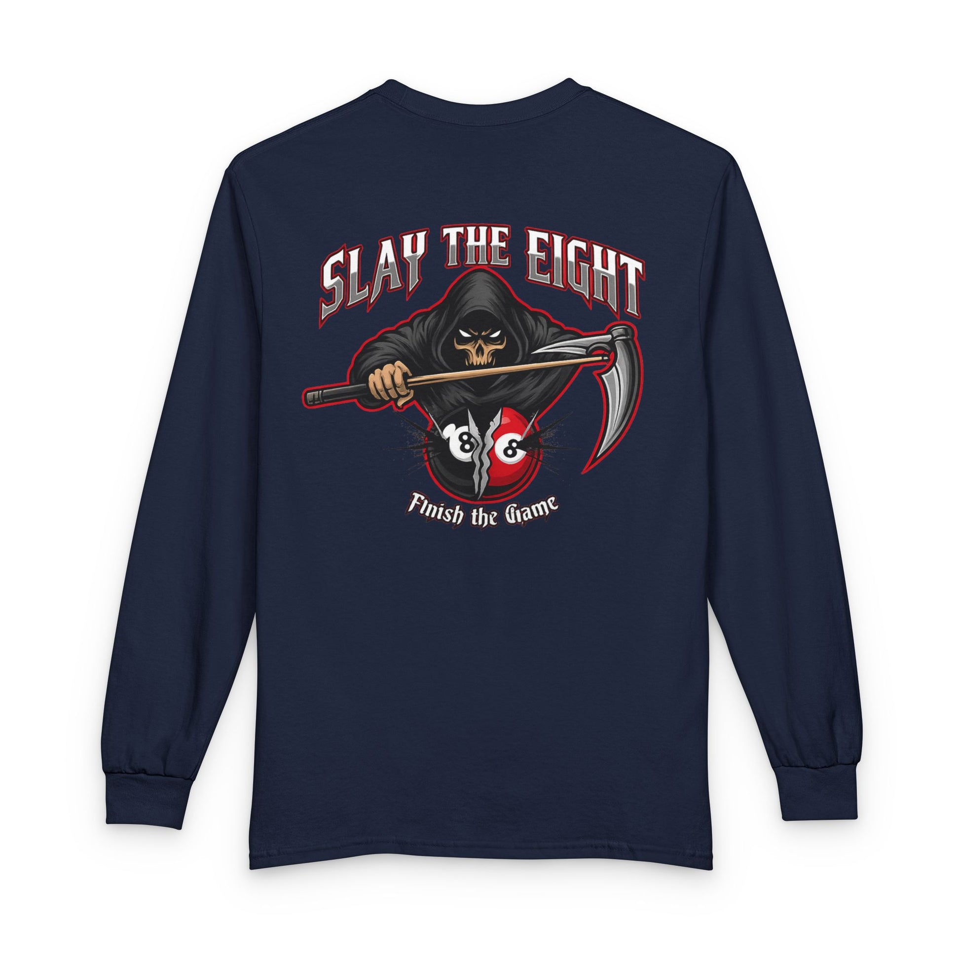 Slay the Eight Grim Reaper Billiards Gildan Long Sleeve Tee