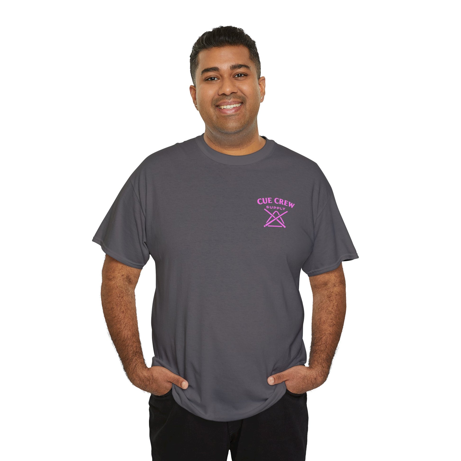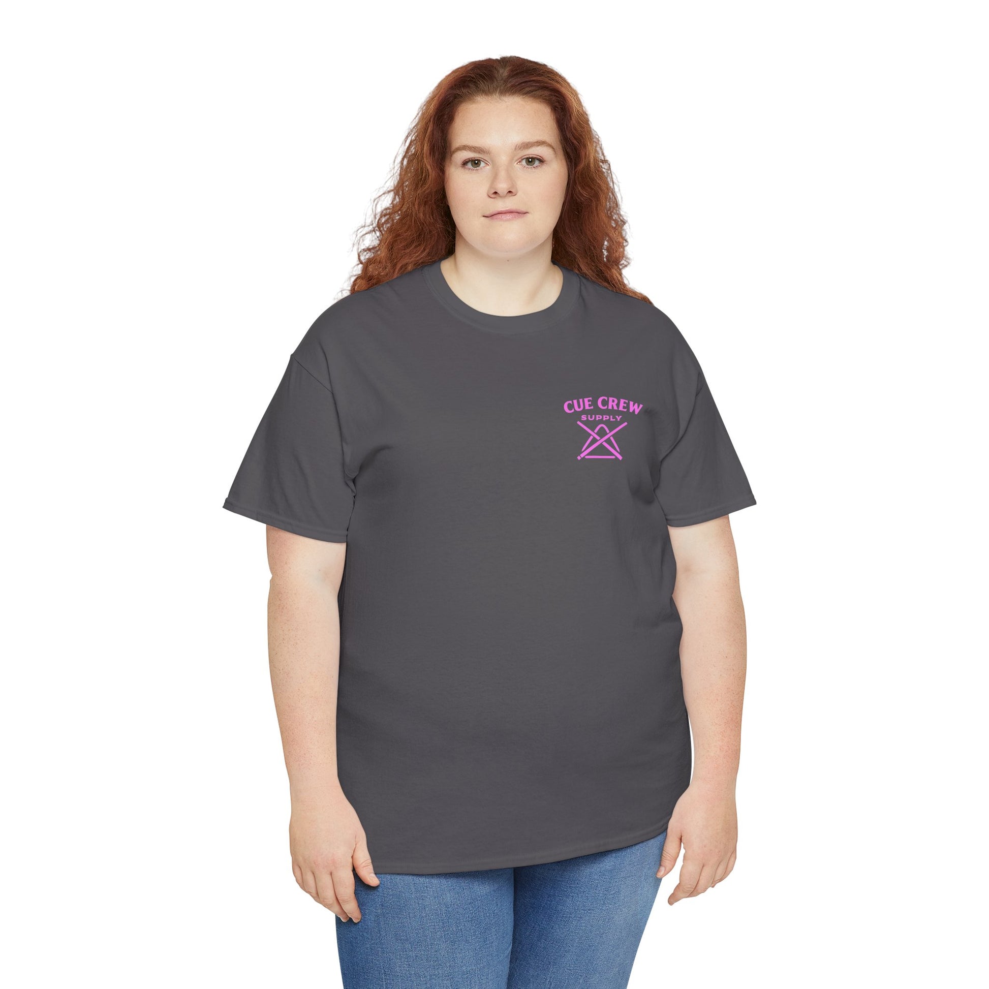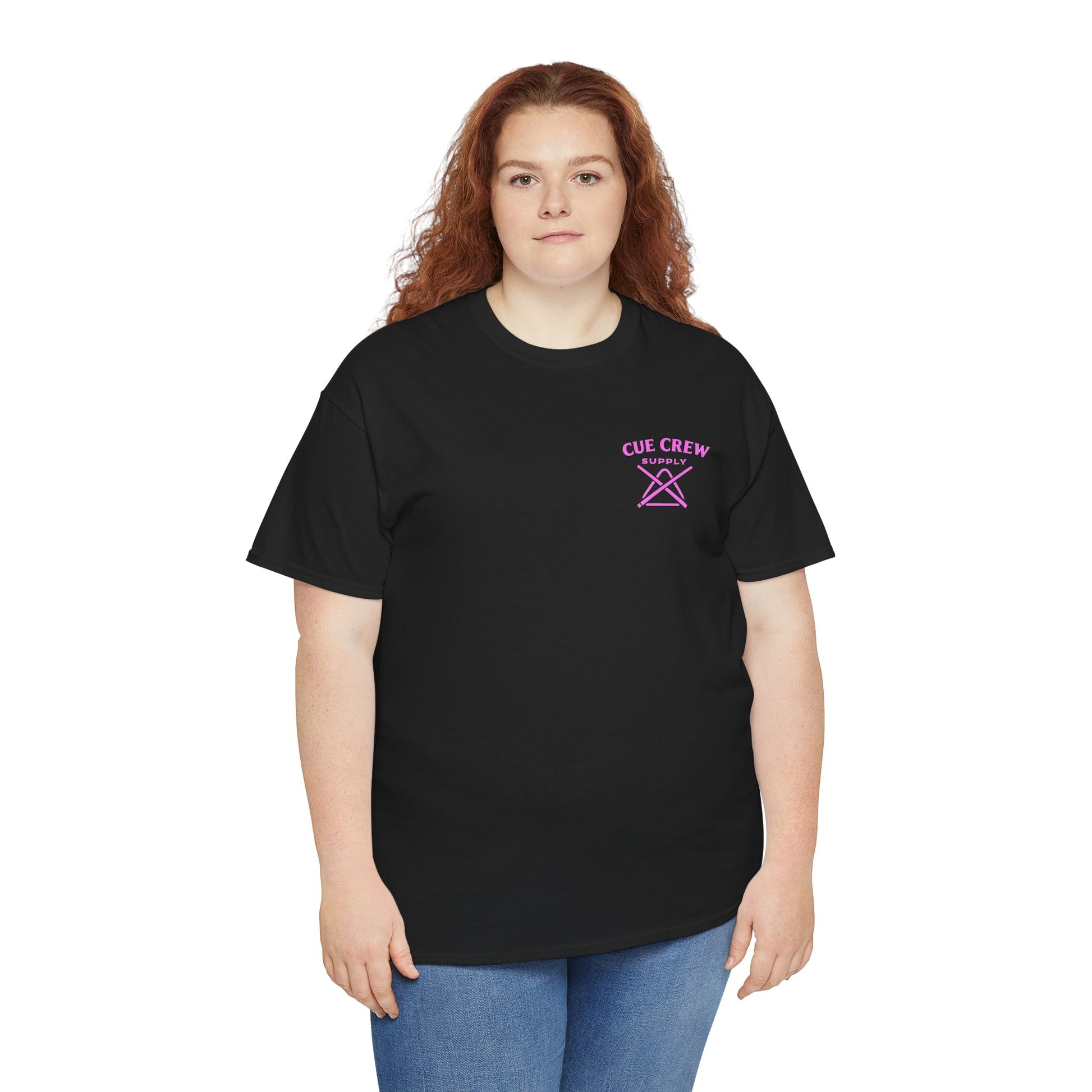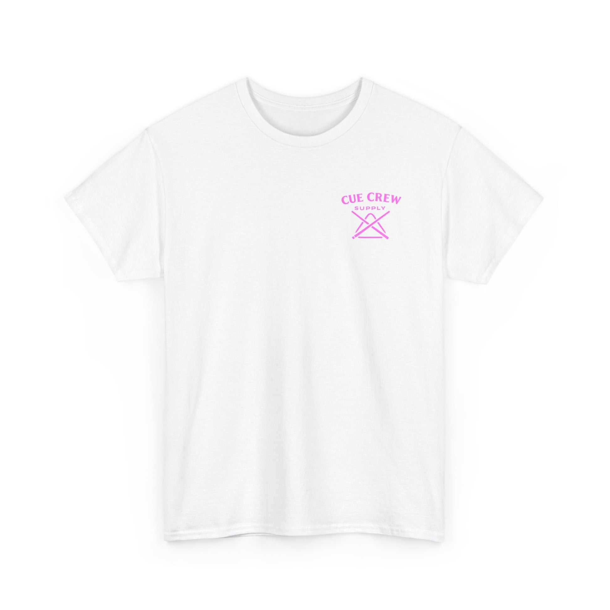 White classic-fit tee with a vintage pin-up and billiards vibe. A soft, midweight cotton body carries a small, pastel logo on the chest and a larger retro illustration on the back: a sultry pin-up woman reclining against an oversized 8-ball with a cue in hand, framed by a thin circle and cursive script. Wear it to add playful, slightly rebellious flair to weekend hangs, pool nights, or city strolls. The shirt feels lived-in without sacrificing structure—ribbed collar keeps its shape, shoulder tape prevents stretch, and the tear-away label keeps the neckline comfortable. The printed details use a mix of DTF and DTG methods for crisp color and fine edges that pop on the clean white fabric.